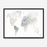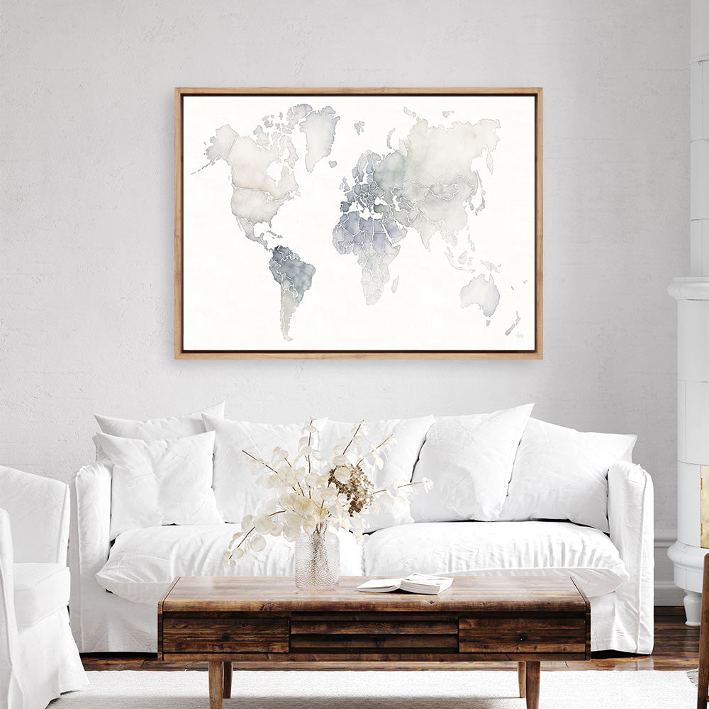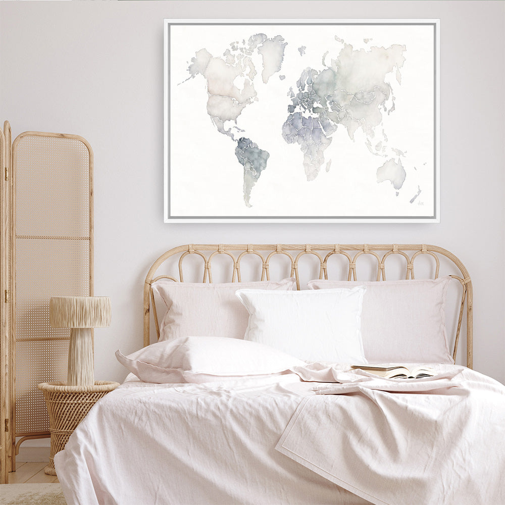 Shop Watercolor Wanderlust Canvas Print by Laura Marshall and update your wall decor at home easily with this grey coloured map of the world artwork from our abstract hand painted print collection .