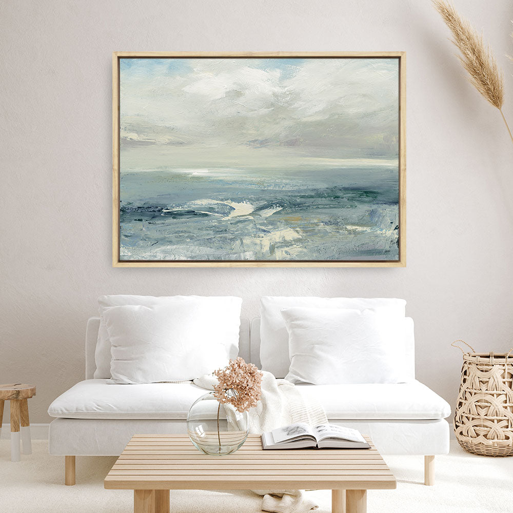 Shop Waves Canvas Wall Art Print by Julia Purinton and update your wall decor at home easily with this blue ocean landscape themed framed canvas artwork piece from our hand painted prints collection.
