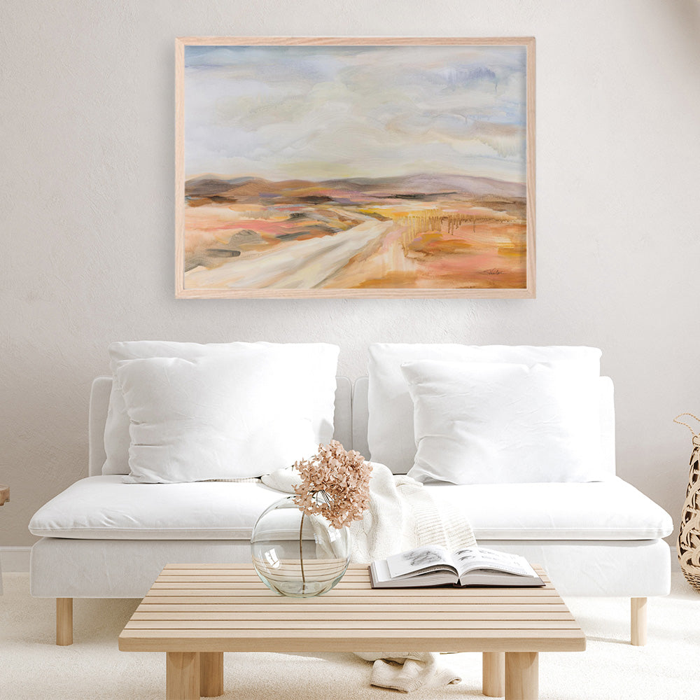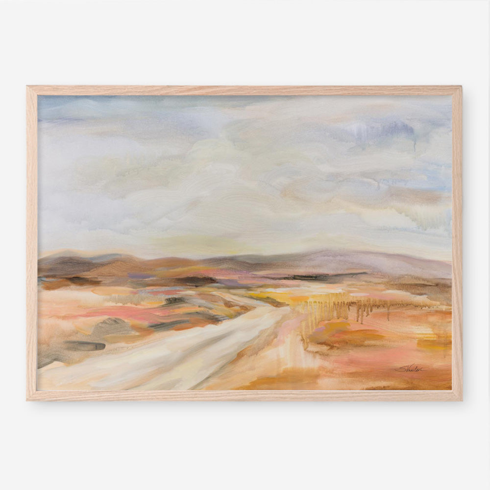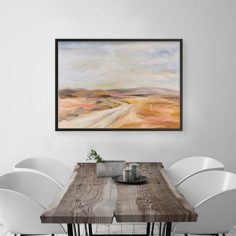 Shop White Desert RoadArt Print by Silvia Vassilevaand update your wall decor at home easily with this roadside desert landscape artwork from our abstract hand painted print collection.