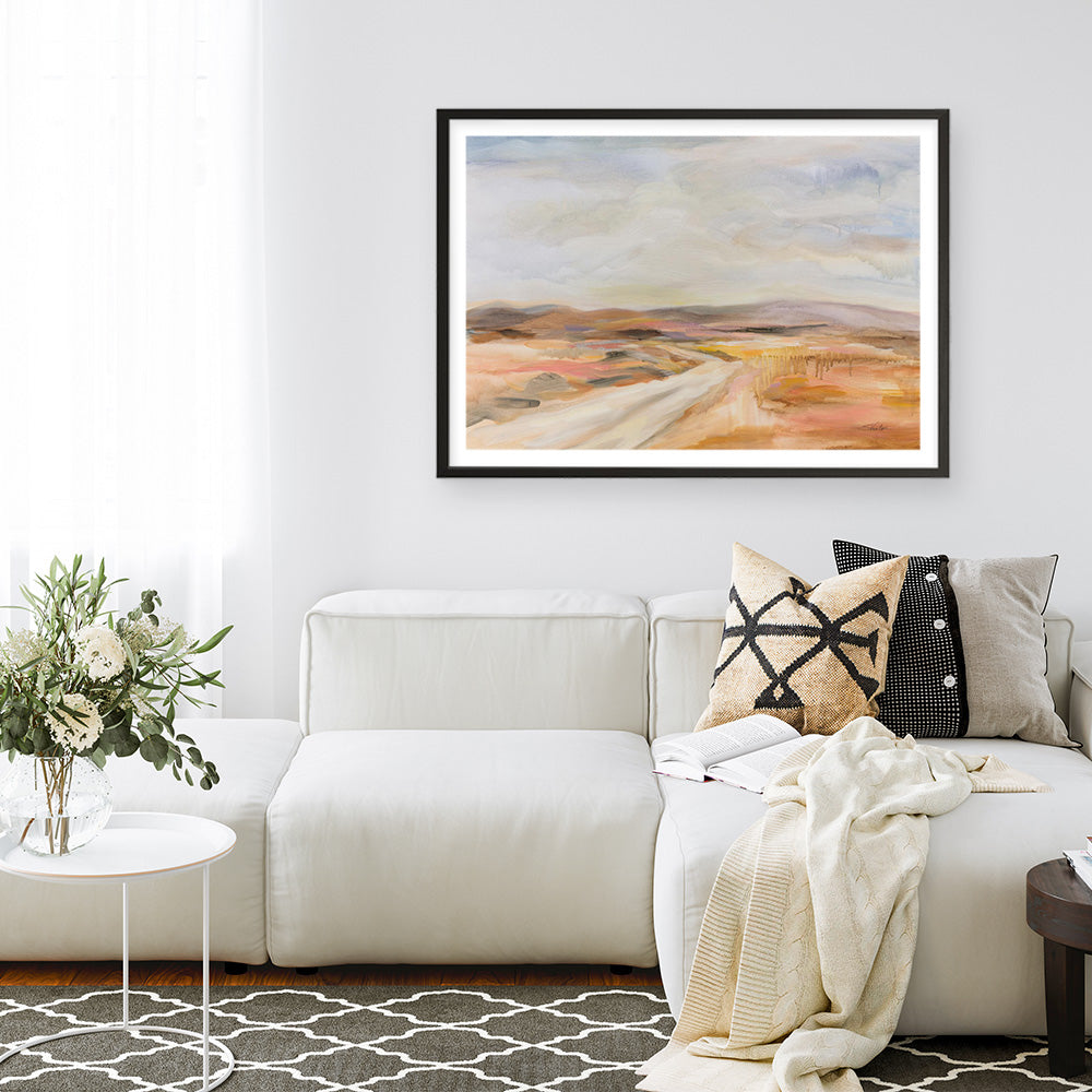 Our art prints are custom printed on quality 230gsm white matte paper. We offer a wide range of sizes. Choose from an unframed print or a framed, ready-to-hang option.