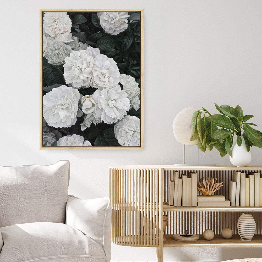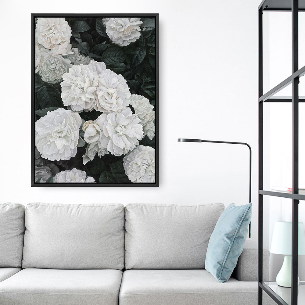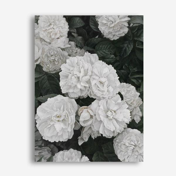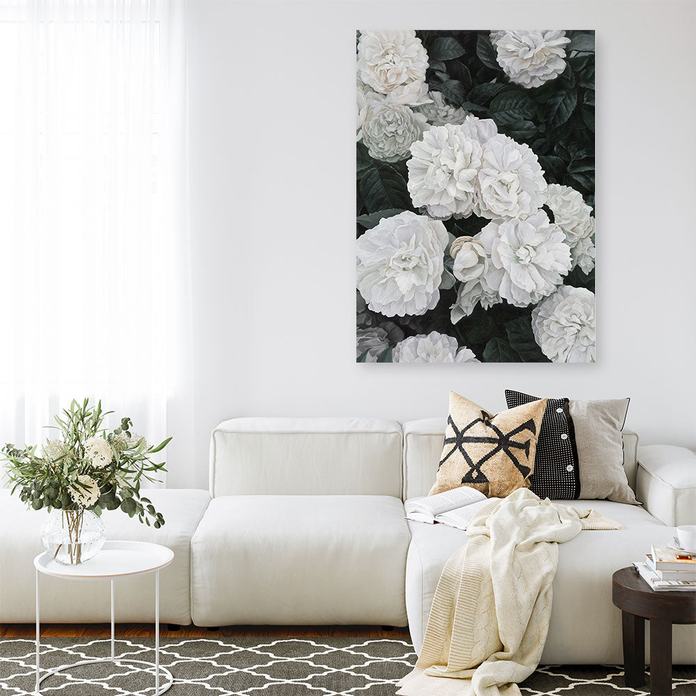 Shop White English Roses Canvas Print by The Print Emporium. This canvas wall art print from our hand painted aesthetic print collection, was originally hand painted by us and is now available as a reproduction printed stretched and ready-to-hang canvas artwork.