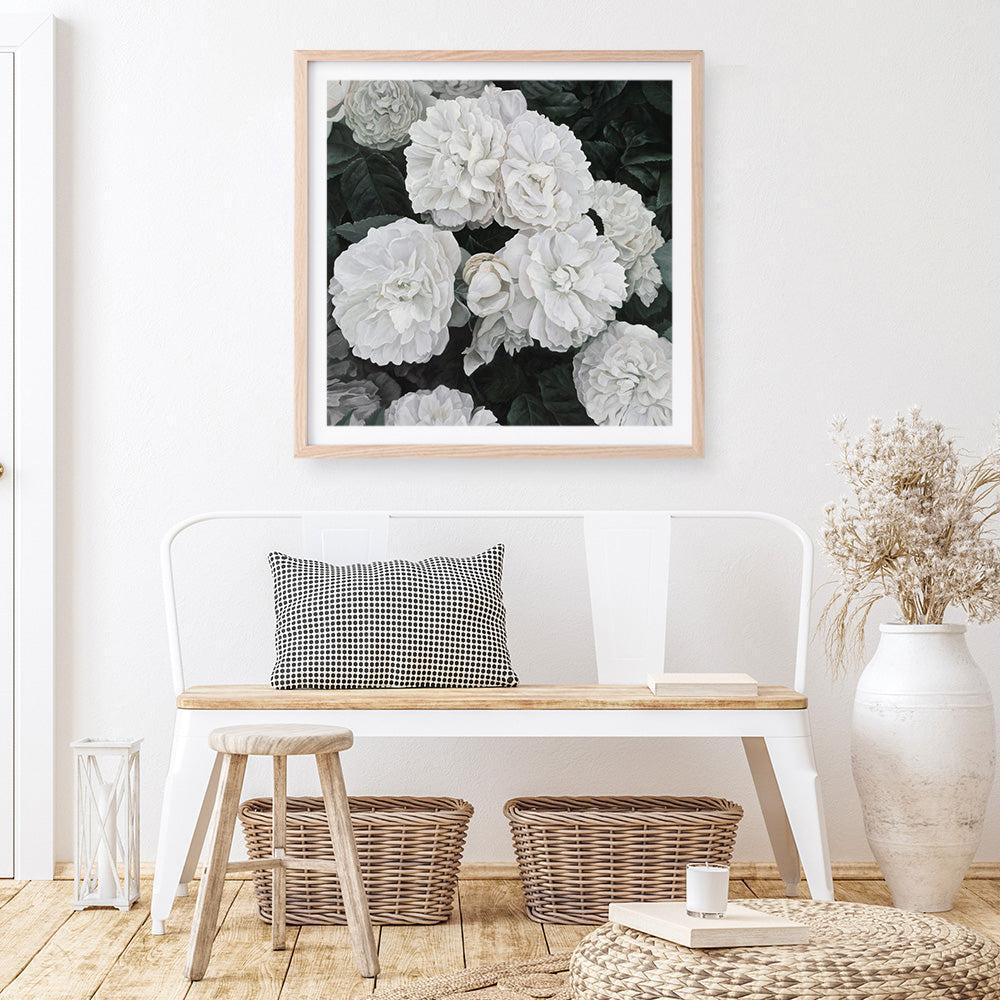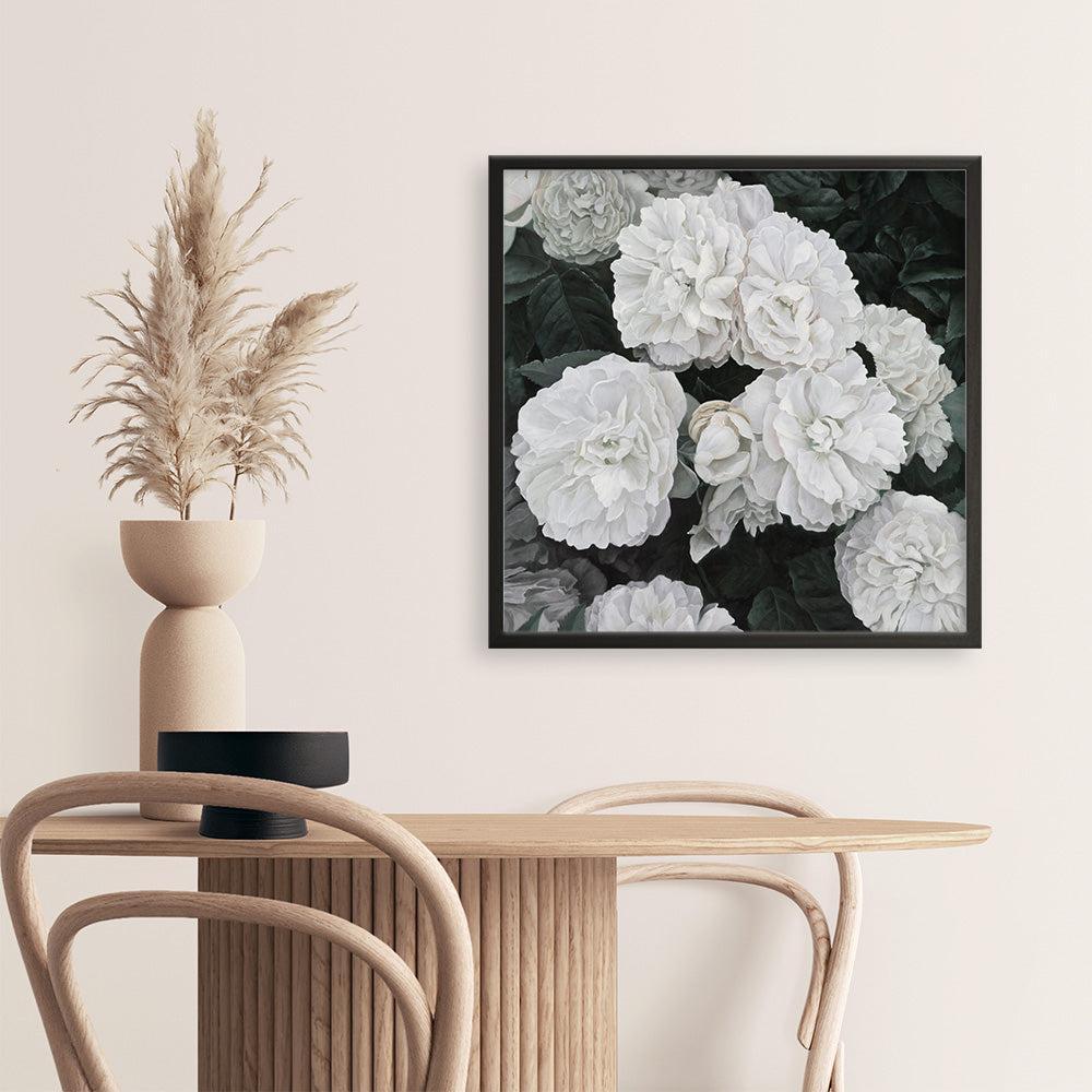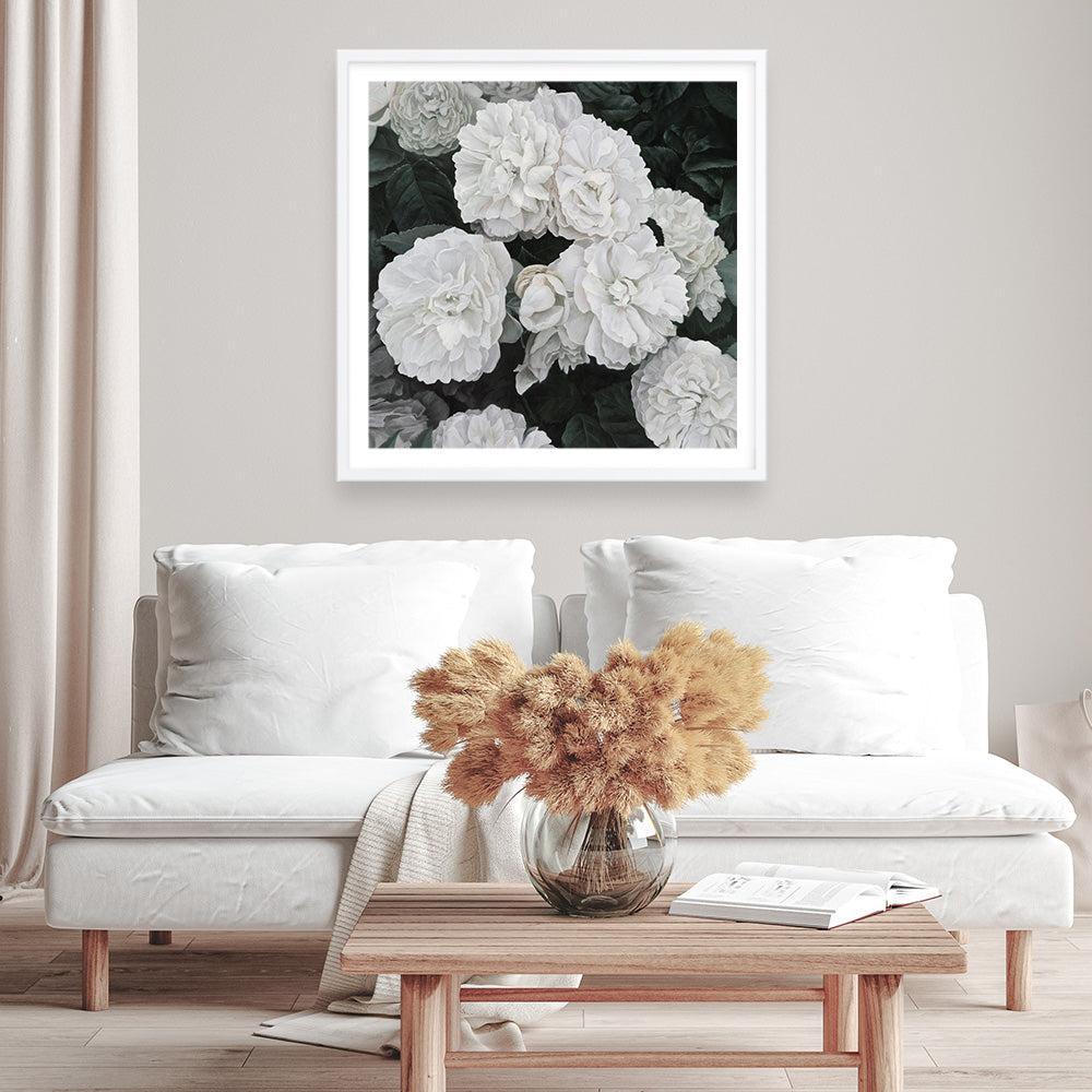 Shop White English Roses (Square) Art Print by The Print Emporium and update your wall decor at home easily with this artwork print from our collection.