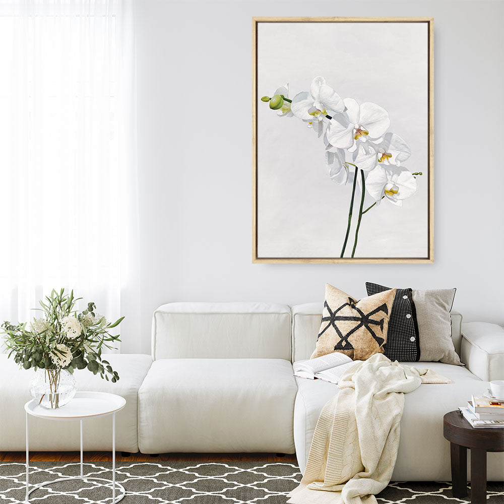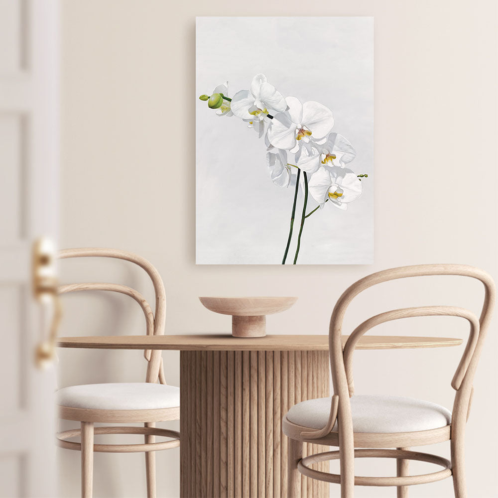 Shop White Orchid Stems Canvas Print by The Print Emporium. This canvas wall art print from our hand painted aesthetic print collection, was originally hand painted by us and is now available as a reproduction printed stretched and ready-to-hang canvas artwork.